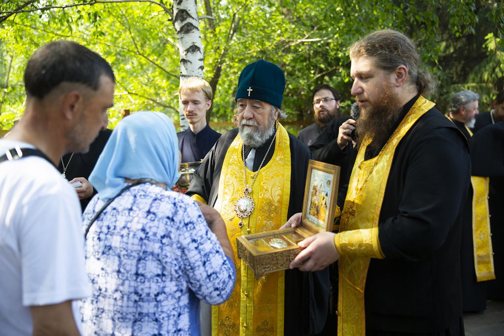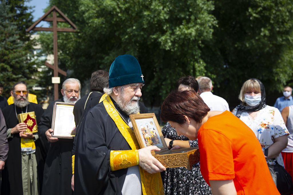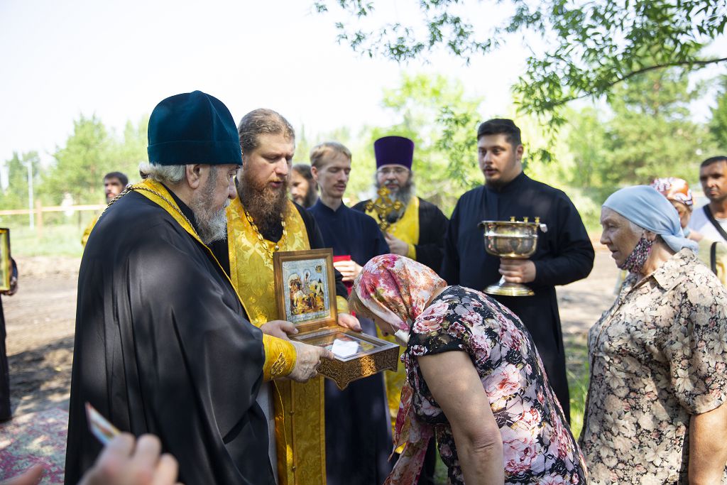 Архипастырь совершил молебны об избавлении от вредоносного поветрия – коронавирусной инфекции – в сквере молодоженов, у поклонных крестов на Сыропятском, Черлакском, Исилькульском и Тюкалинском трактах, возле памятного креста репрессированным в 30-е годы.
