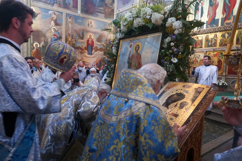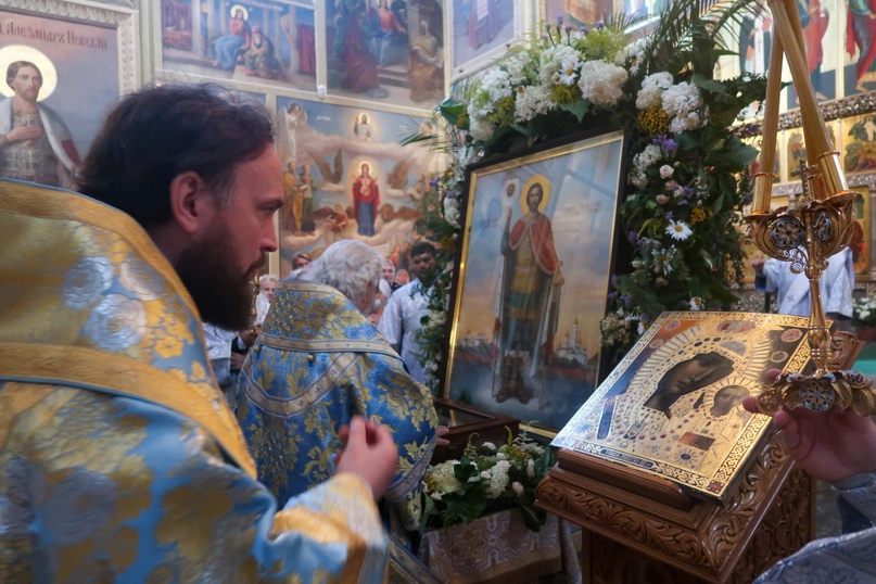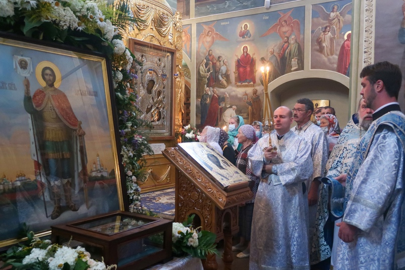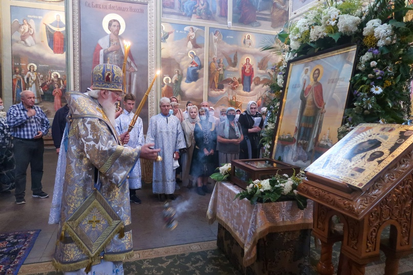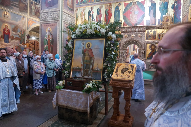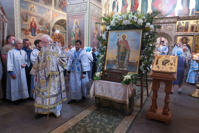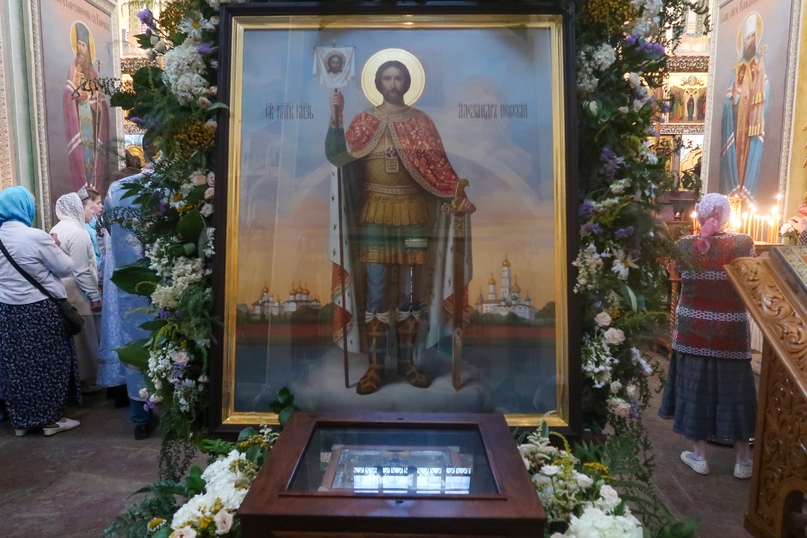По окончании литургии был отслужен молебен Богородице и благоверному князю Александру Невскому перед ковчегом с его честными мощами.