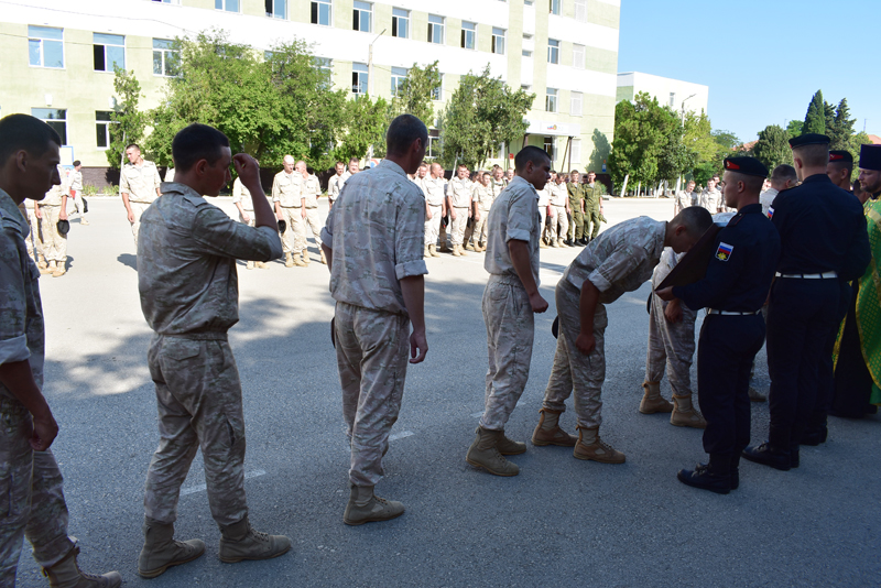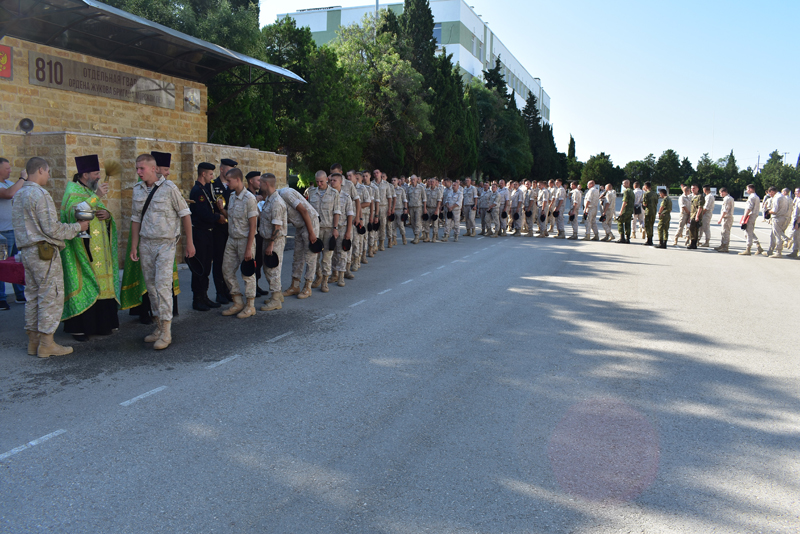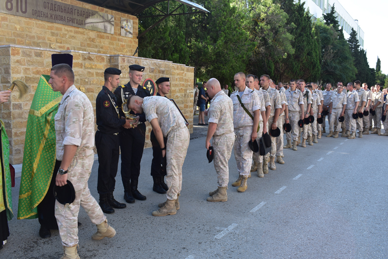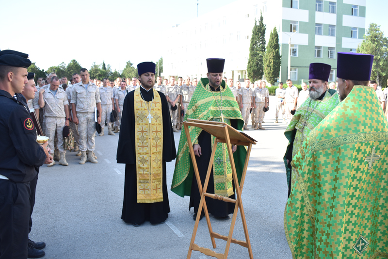 Молебен перед ковчегом с частицей мощей и иконой святого князя был отслужен на плацу, где выстроился личный состав бригады.