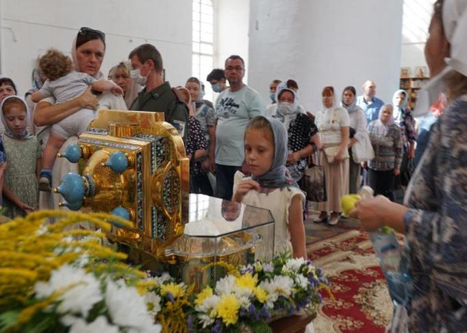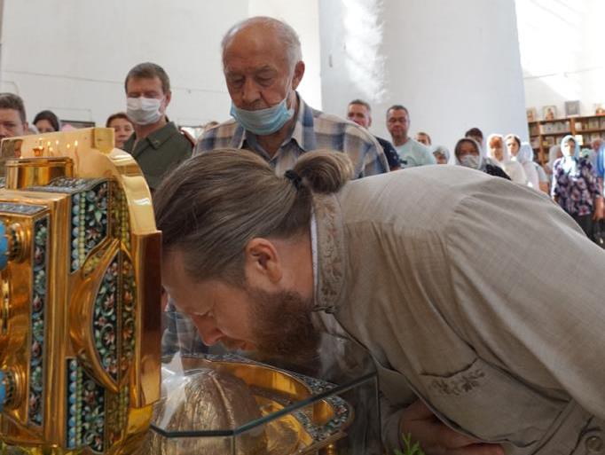 Продолжается пребывание в Рязани частицы мощей благоверного князя Александра Невского. Святыня находится в Успенском соборе Рязанского кремля, ее встреча состоялась 3 августа 2021 года.