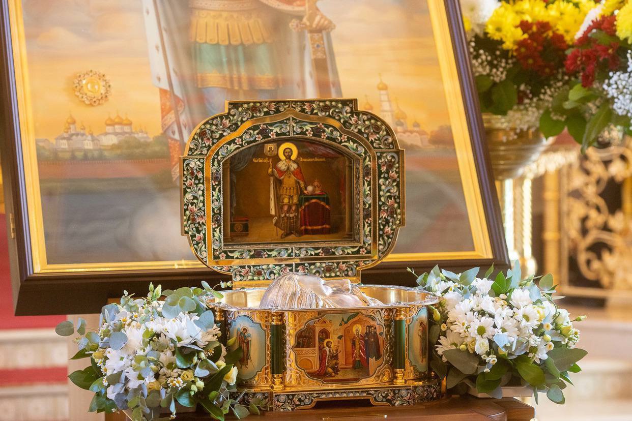 Весь день в Воскресенском храме люди могли поклониться мощам святого князя Александра, а 14 – 16 июня доступ верующих к святыне открыт в кафедральном Троицком соборе.
