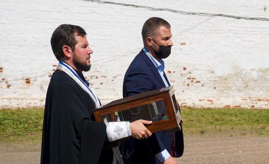 Святыню торжественно встретили в Успенском соборе Ростовского кремля.