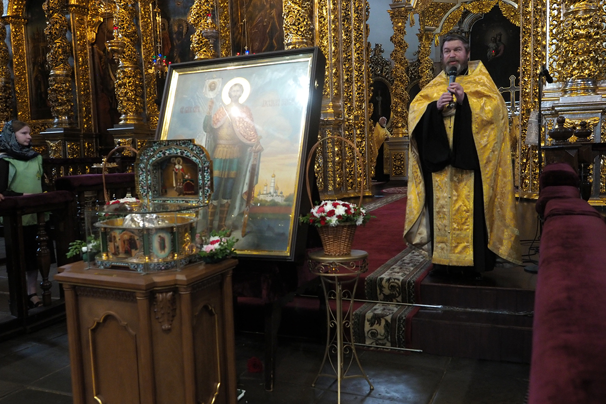Перед мощами благоверного князя Александра Невского был совершен молебен. Протоиерей Михаил Горовой обратился к собравшимся в храме с проповедью. Затем присутствовавшие смогли поклониться святыне.