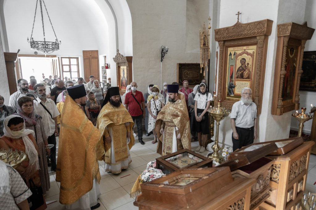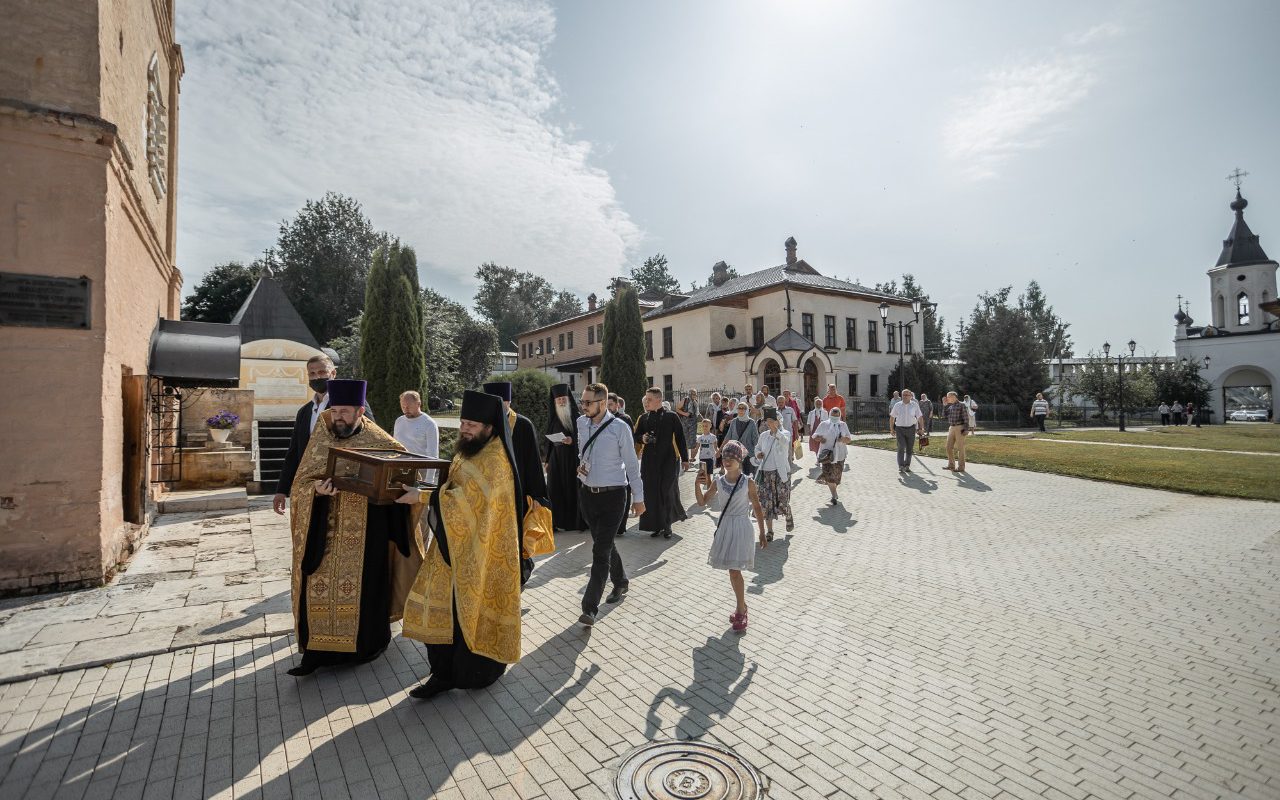 В обители торжественно встретили и.о. наместника монастыря иеромонах Дамаскин (Леонов), благочинный Старицкого церковного округа протоиерей Владимир Марценюк, глава Старицкого района С.Ю. Журавлев, братия обители, паломники, прихожане. После торжественной встречи ковчега в обители была совершена Божественная литургия, а после отслужен торжественный молебен. В течение всего дня духовенством Старицкого благочиния совершались молебны.