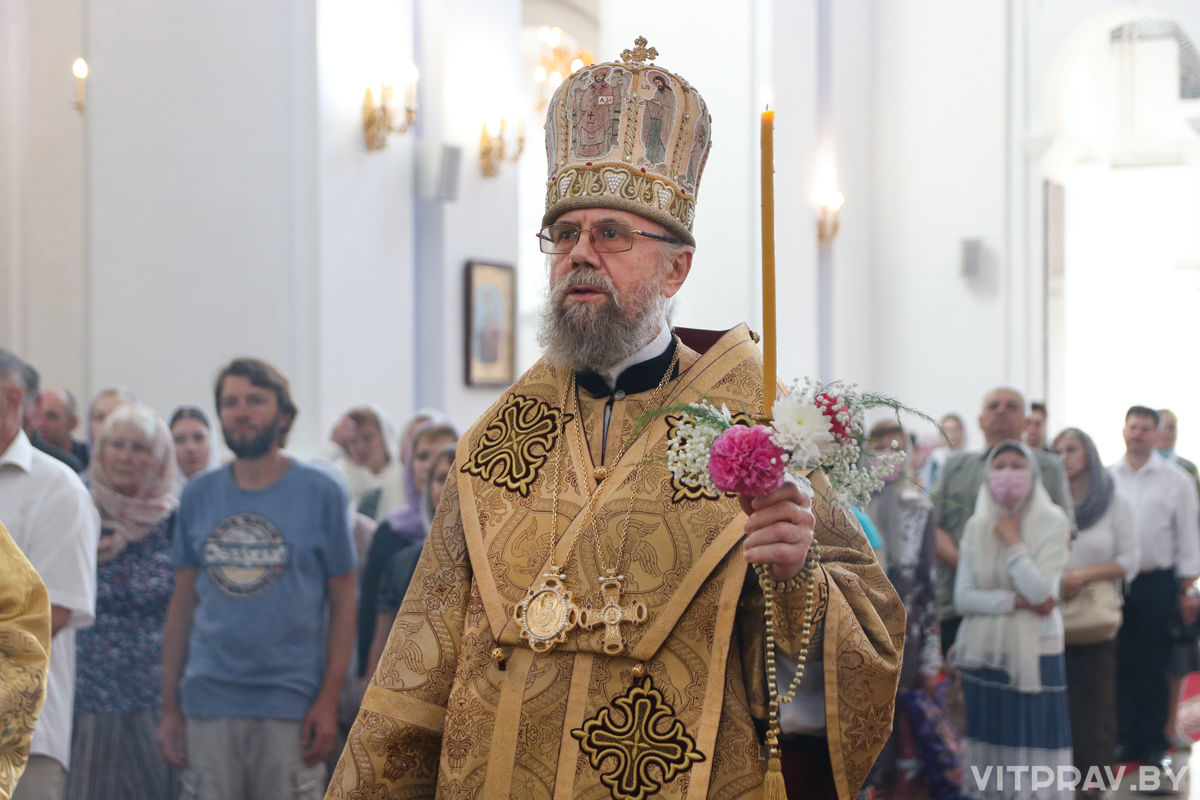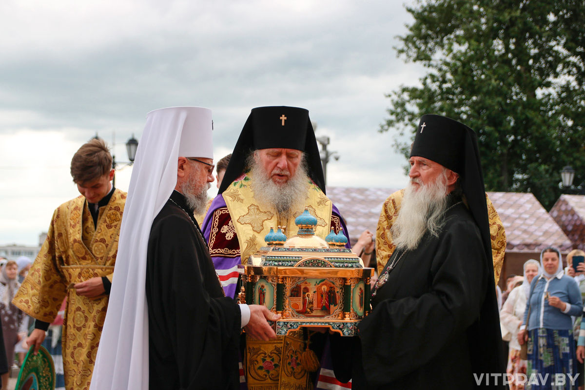 Ковчег с мощами у кафедрального храма встречали митрополит Белоцерковский и Богуславский Августин, архиепископ Витебский и Оршанский Димитрий, а также архиепископ Могилевский и Мстиславский Софроний. После встречи святыни в Успенском соборе началось всенощное бдение.