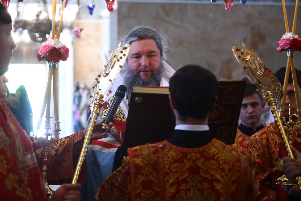 Высокопреосвященному владыке сослужили: секретарь Екатеринбургской епархии митрофорный протоиерей Николай Ладюк, секретарь епархиального совета Екатеринбургской епархии игумен Вениамин (Райников), руководитель службы протокола Екатеринбургской епархии протоиерей Николай Тарантин, руководитель административного секретариата Екатеринбургской епархии иеромонах Аркадий (Логинов), председатель отделов Екатеринбургской епархии по связям Церкви с обществом и СМИ и по взаимодействию с казачеством, старший священник Храма-Памятника на Крови протоиерей Максим Миняйло; благочинный Монастырского округа храмов Екатеринбургской епархии игумен Иероним (Миронов), благочинный Рождественского округа храмов Екатеринбурга и настоятель храма Рождества Христова иерей Андрей Юганец; настоятель храма в честь Владимирской иконы Пресвятой Богородицы, помощник начальника отделения по работе с верующими военнослужащими Центрального военного округа протоиерей Андрей Канев и духовенство Екатеринбургской епархии.