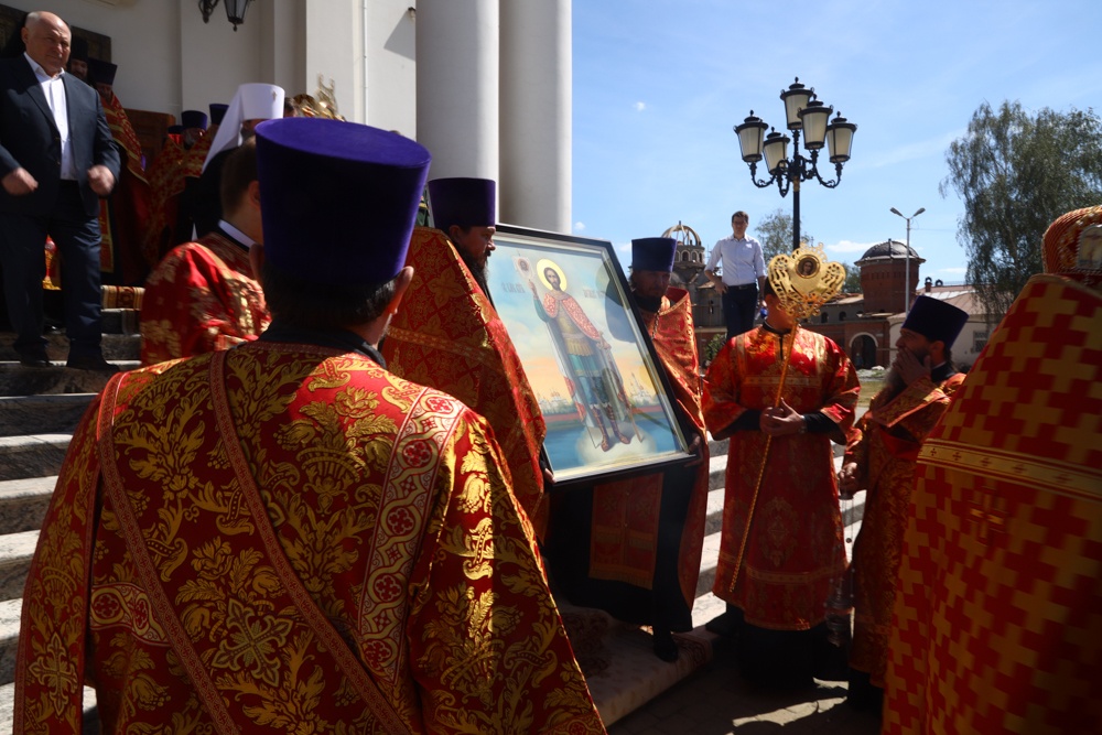 Под молебное пение икону святого Александра Невского и ковчег с частицей мощей, хранящийся в Александро-Невском соборе с 2013 года (когда Святейший Патриарх Кирилл освятил собор во время своего Первосвятительского визита в Екатеринбург), торжественно пронесли до автомобиля, на котором святыня объедет весь регион; затем крестный ход направится в Омск, Новосибирск, Красноярск, Иркутск, Хабаровск, Южно-Сахалинск, Владивосток.