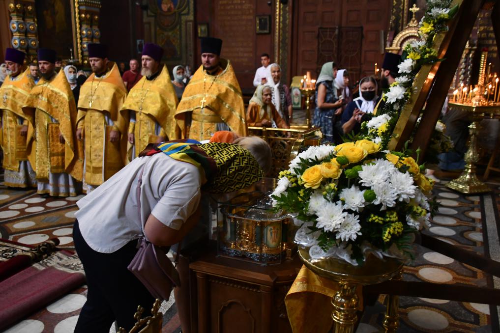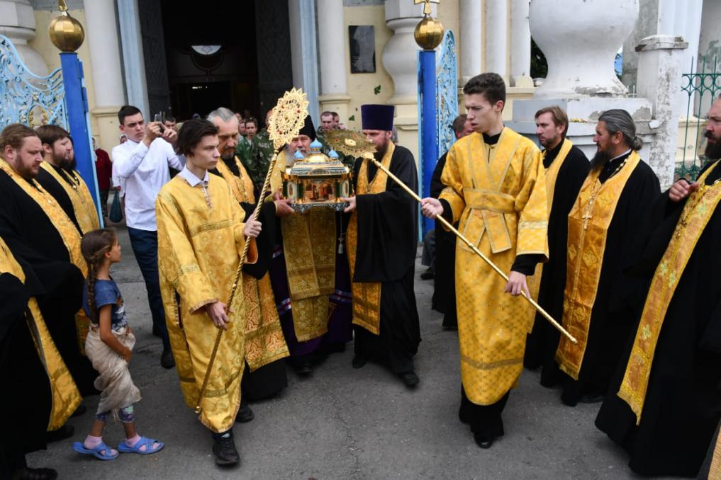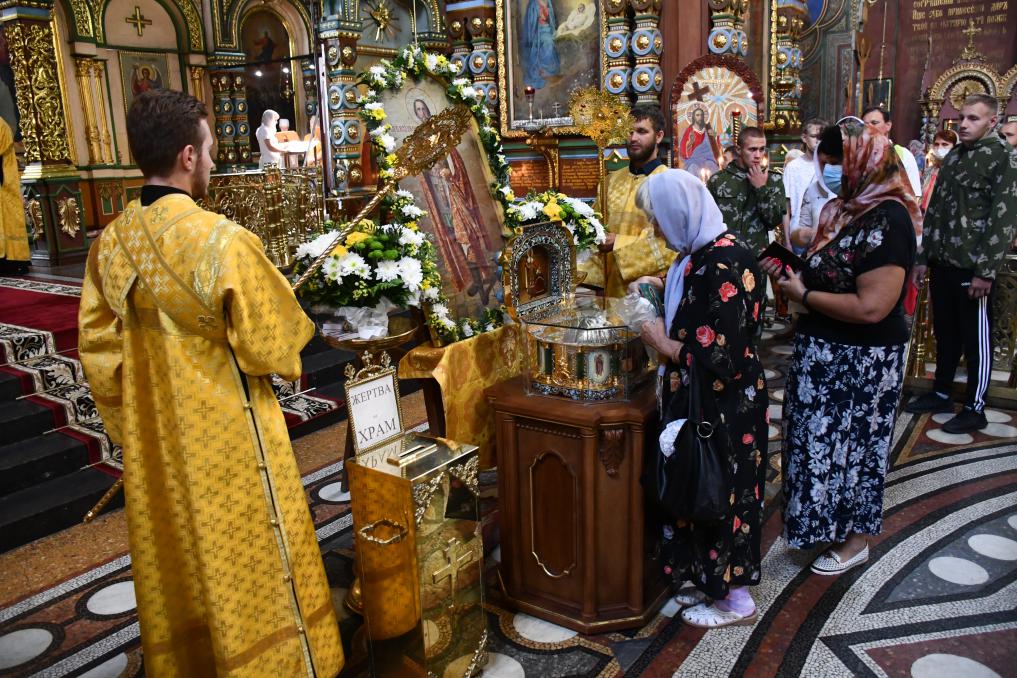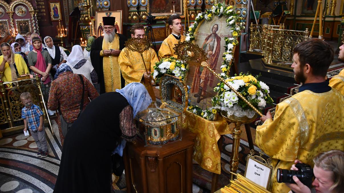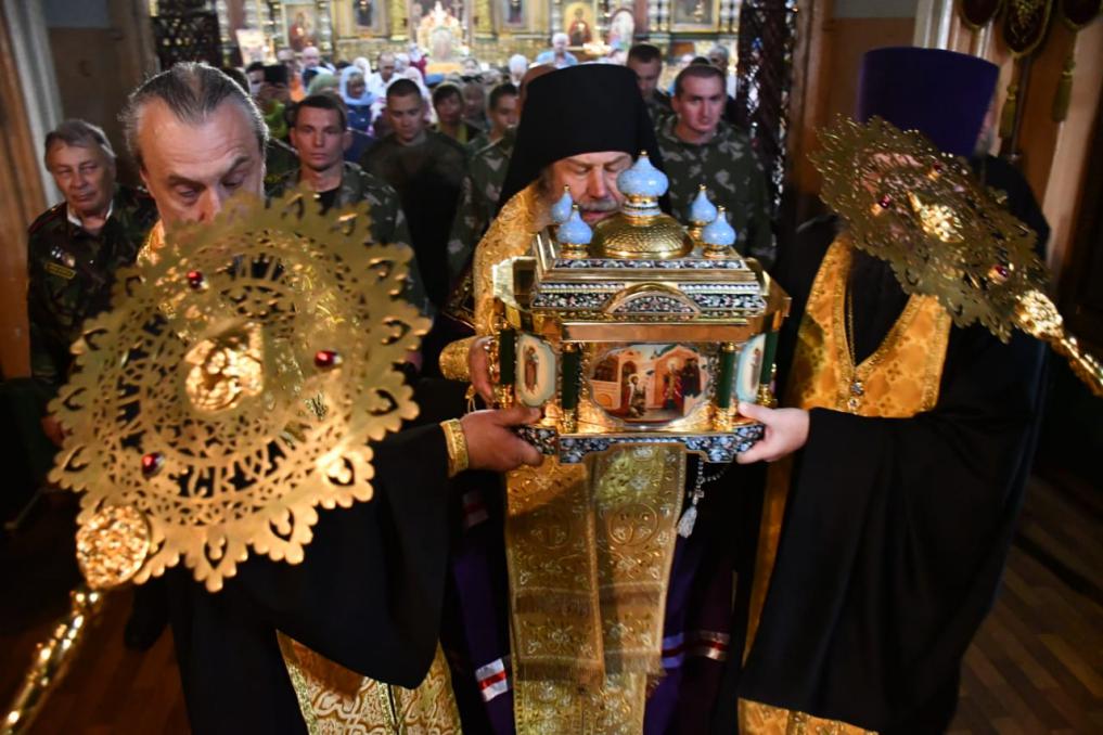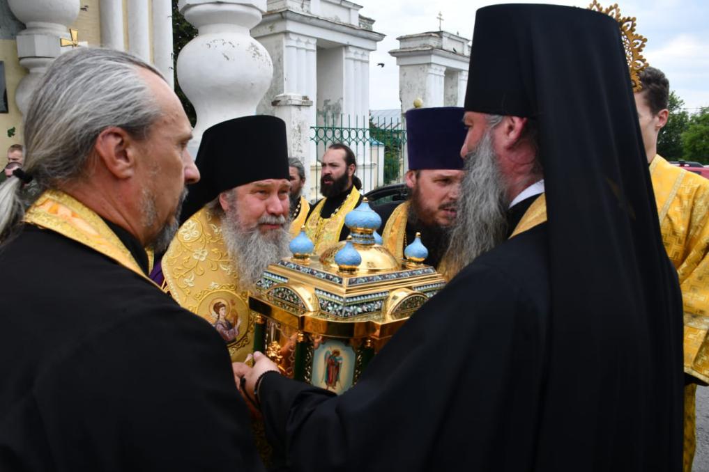 В 14:30 жители Ельца простились со святыней: после молебного пения епископ Елецкий и Лебедянский Максим передал ковчег с мощами в руки игумена Сергия (Куксова), который сопровождает мощи.